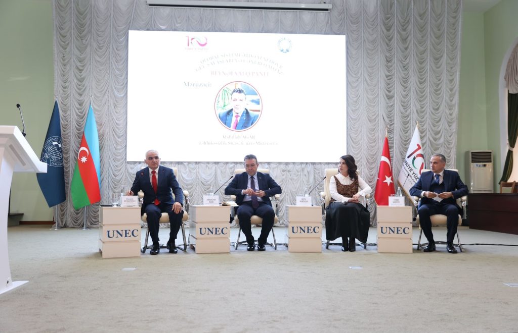 The events and processes taking place in the world, reciprocal relations in the international cooperation, changes in the global system, modern economic and political trends, international civil society, geopolitical analysis, power struggles, and the current situation in the South Caucasus were the main topics of discussions at the  conference attended by the state and government representatives, the Ambassador of Turkey to Azerbaijan Jahit Baghchi and high-ranking officials of the Embassy, ​​management and the teaching staff of the University of Economics, as well as representatives of the business sector.